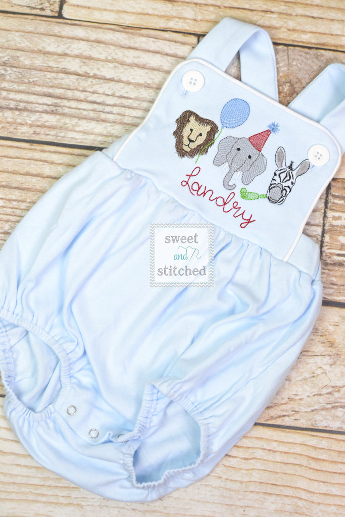 Monogrammed baby boy Birthday romper with zoo animals, party animal birthday outfit, zoo themed cake smash outfit, zoo birthday outfit