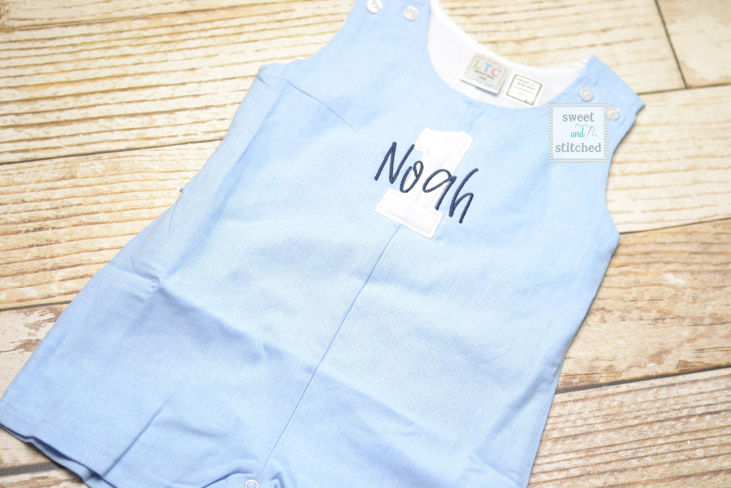 Monogrammed baby boy jon jon with 1 and name, baby boy 1st birthday outfit with name, monogrammed jon jon, cake smash outfit
