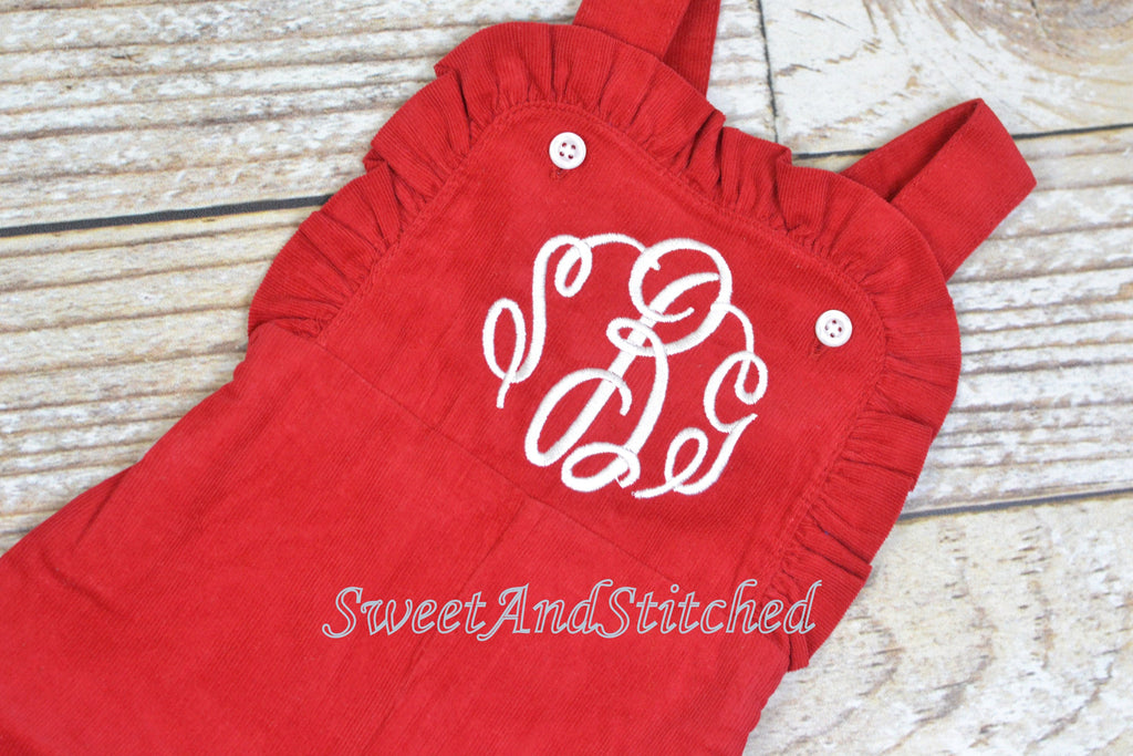 Baby girl monogrammed Christmas outfit, Red Ruffle Christmas overalls, girls Christmas outfit, baby girl valentine's outfit