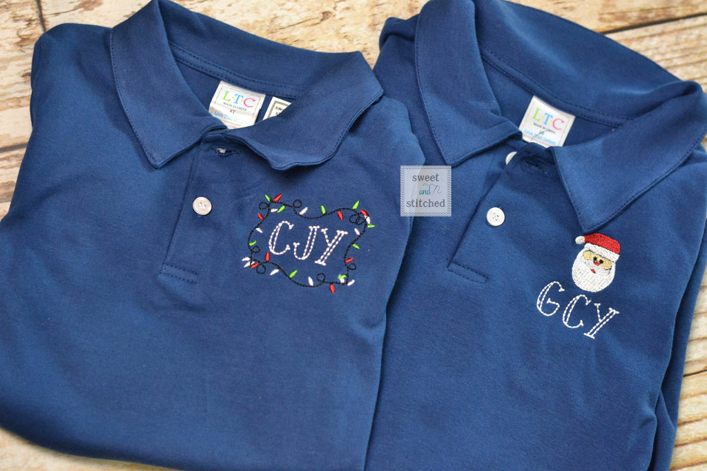 Green polos available with santa here: https://www.etsy.com/SweetAndStitched/listing/1064491616