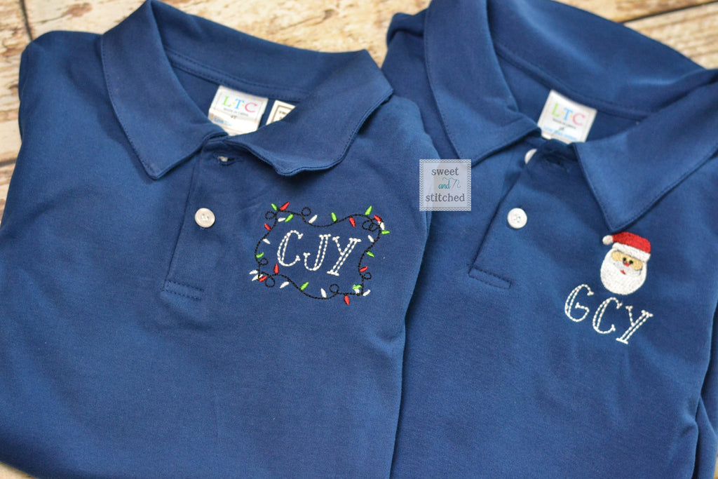 Adorable Monogrammed Dress polo Style shirt for boys with santa or christmas lights design and initials!
