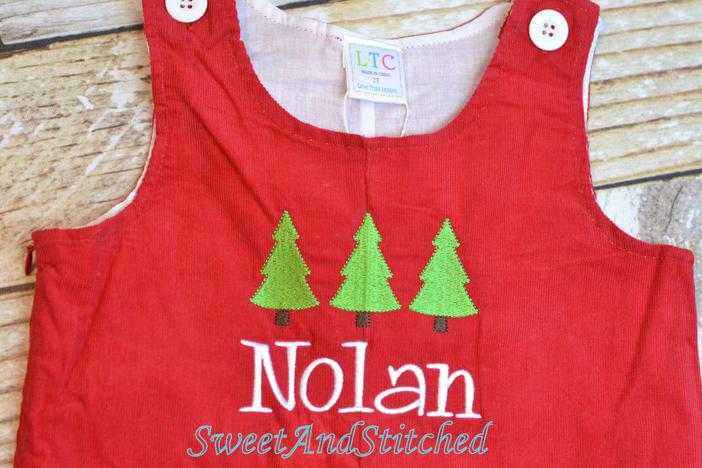Personalized Baby Boy Christmas outfit - red corduroy monogrammed Christmas overalls, baby boy monogrammed 1st Christmas outfit personalized