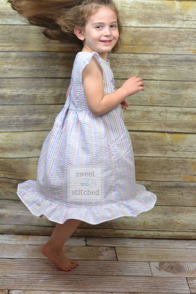 Monogrammed Seersucker 1st Birthday dress, toddler dress, baby girl rainbow cake smash dress personalized, cake smash outfit