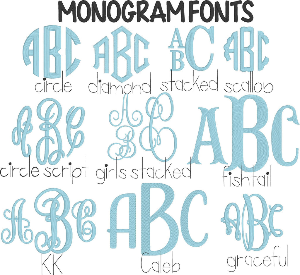 2) Font choice for name or monogram (font choice in two separate listing photos). If you do not choose I will use circle monogram as pictured.